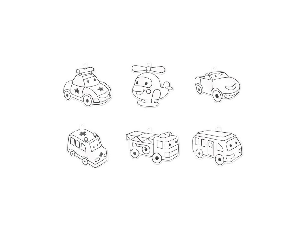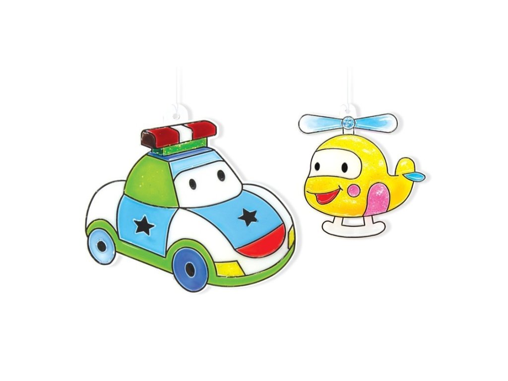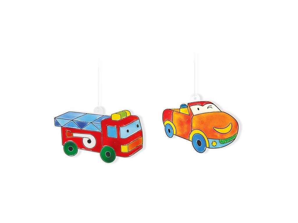 Barvy na sklo – sada Auta (6 barev + 6 sklíček)