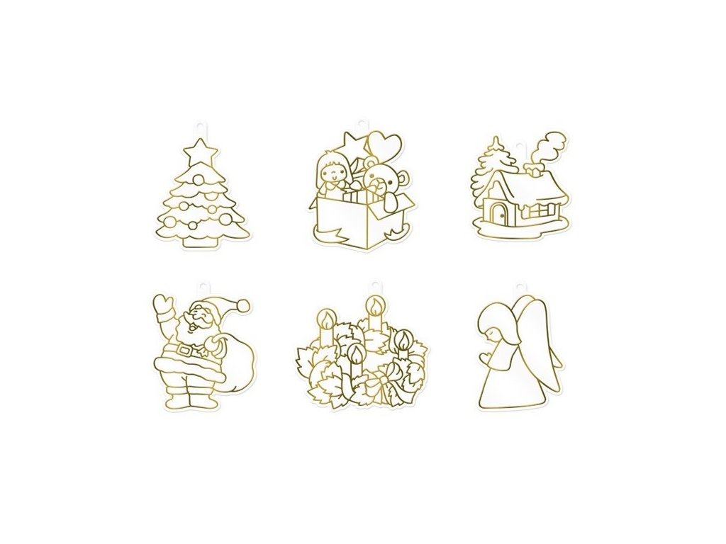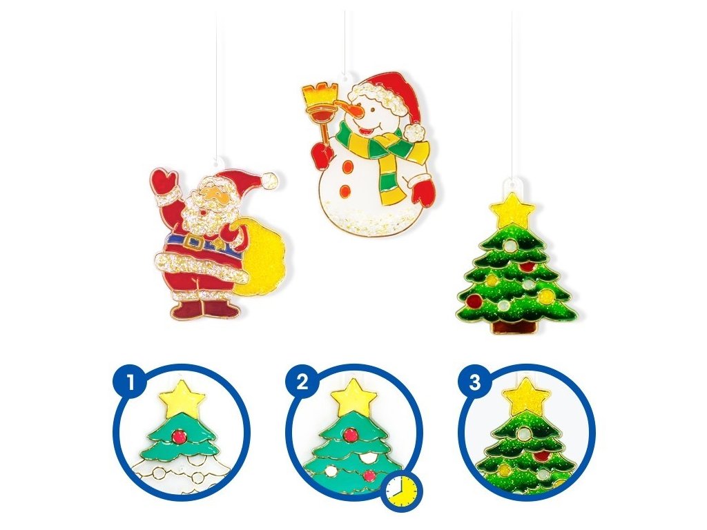 Součástí je 6 lahviček s barvami (klasické, třpytivé i s konfetami) a 6 závěsných sklíček s krásnými motivy – od stromečku až po veselého Santy. Stačí vybarvit, nechat zaschnout a dekorace je hotová! 🎁❄️