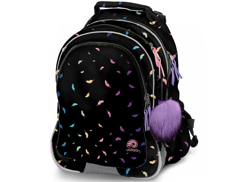Dívčí školní batoh Pírka. Batoh byl vyvinut a vyroben v České republice a díky své ergonomii sedí většině školačkám, které jsou vysoké 134 – 152 cm.