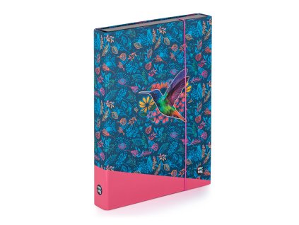 Box na sešity ve formátu A4 s krásným motivem kolibříka. Široký hřbet 4,5 cm, odolný lamino materiál a zavírání na gumičku.