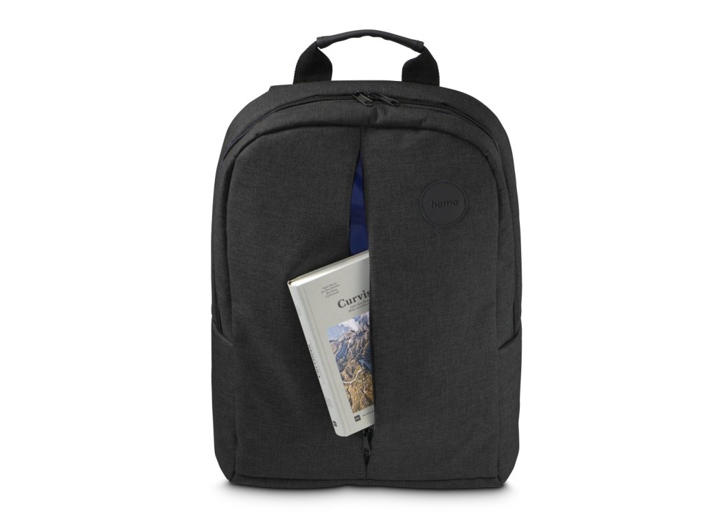 Černý Hama Genua kombinuje jednoduchý vzhled, praktičnost a bezpečné uložení notebooku.