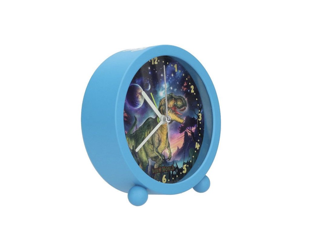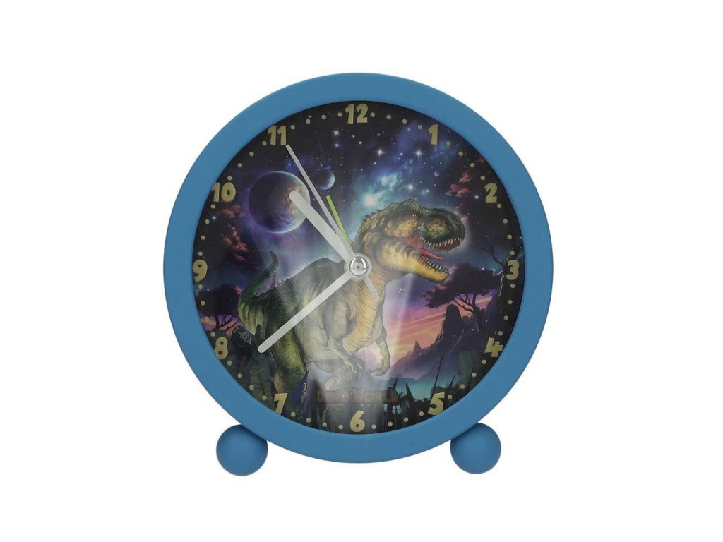 Stolní budík Dino World Galaxy – tichý chod, 11 cm