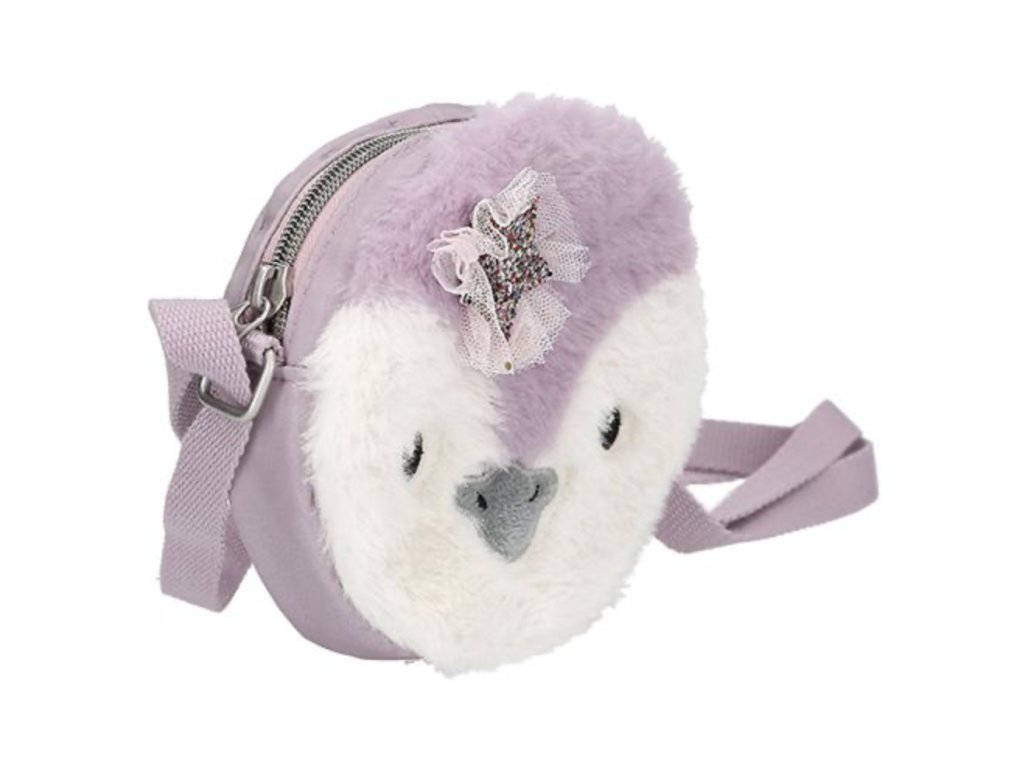 Dětská kabelka přes rameno Princess Mimi – Tučňák, fialový popruh