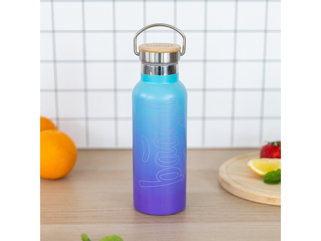 Termoláhev Baagl Gradient modro-fialová s bambusovým víčkem – 500 ml