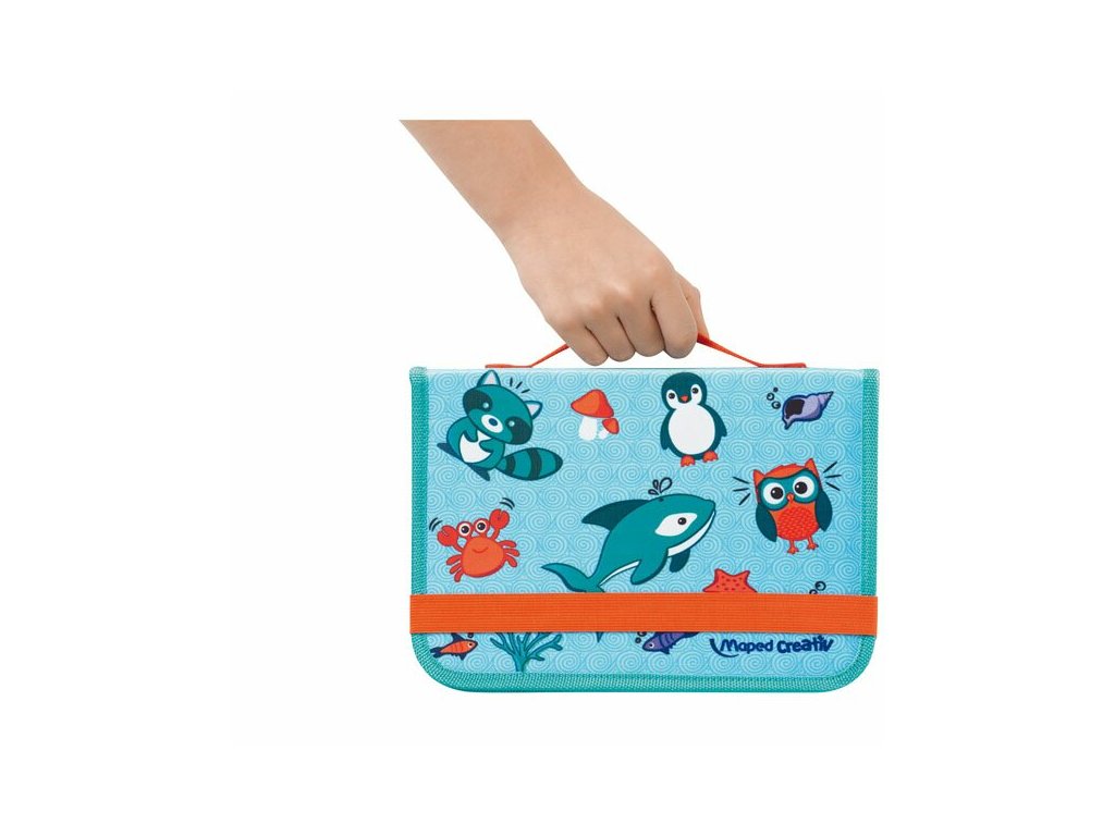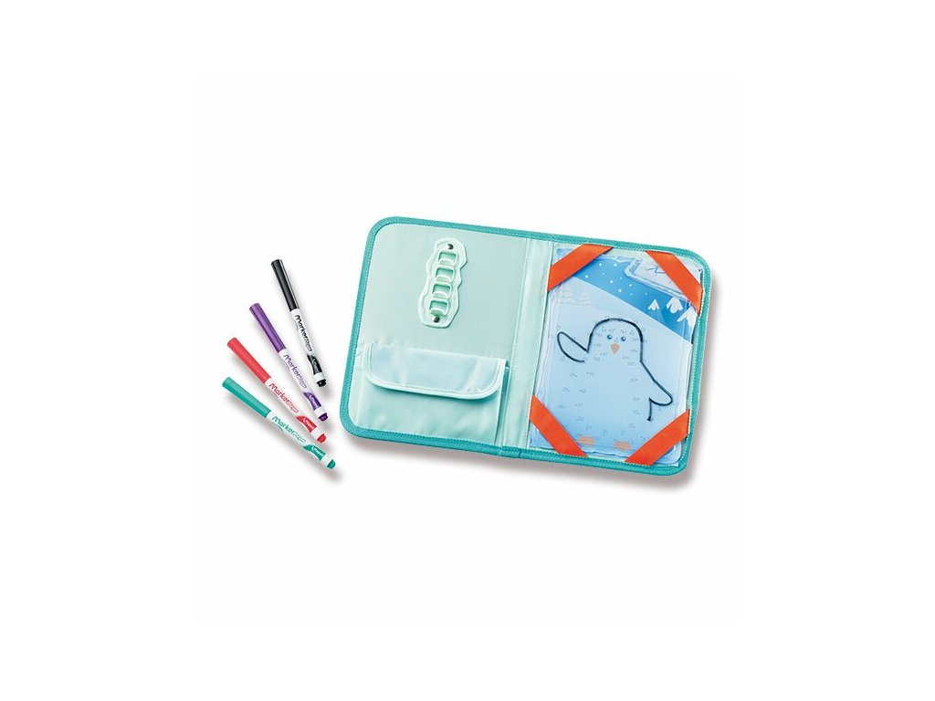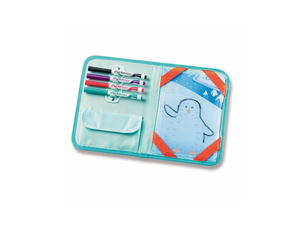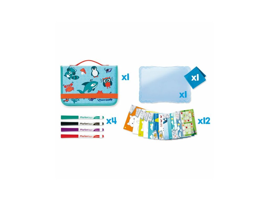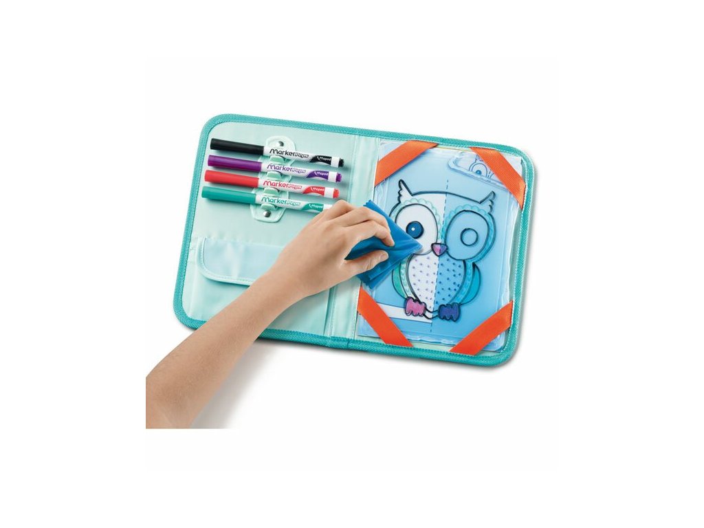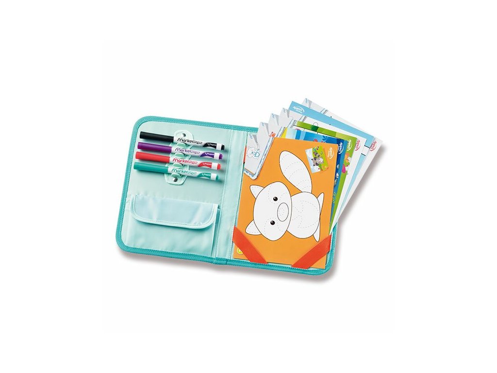 Cestovní kufřík – Hry a kreslení se zvířátky je ideální společník pro malé výtvarníky na cesty, do auta nebo na prázdniny. Díky mazacím fixám a opakovatelně použitelným předlohám si děti užijí hodiny zábavy.