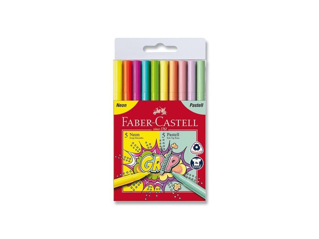 Dětské fixy Faber-Castell Grip Neon a Pastel – 10 barev