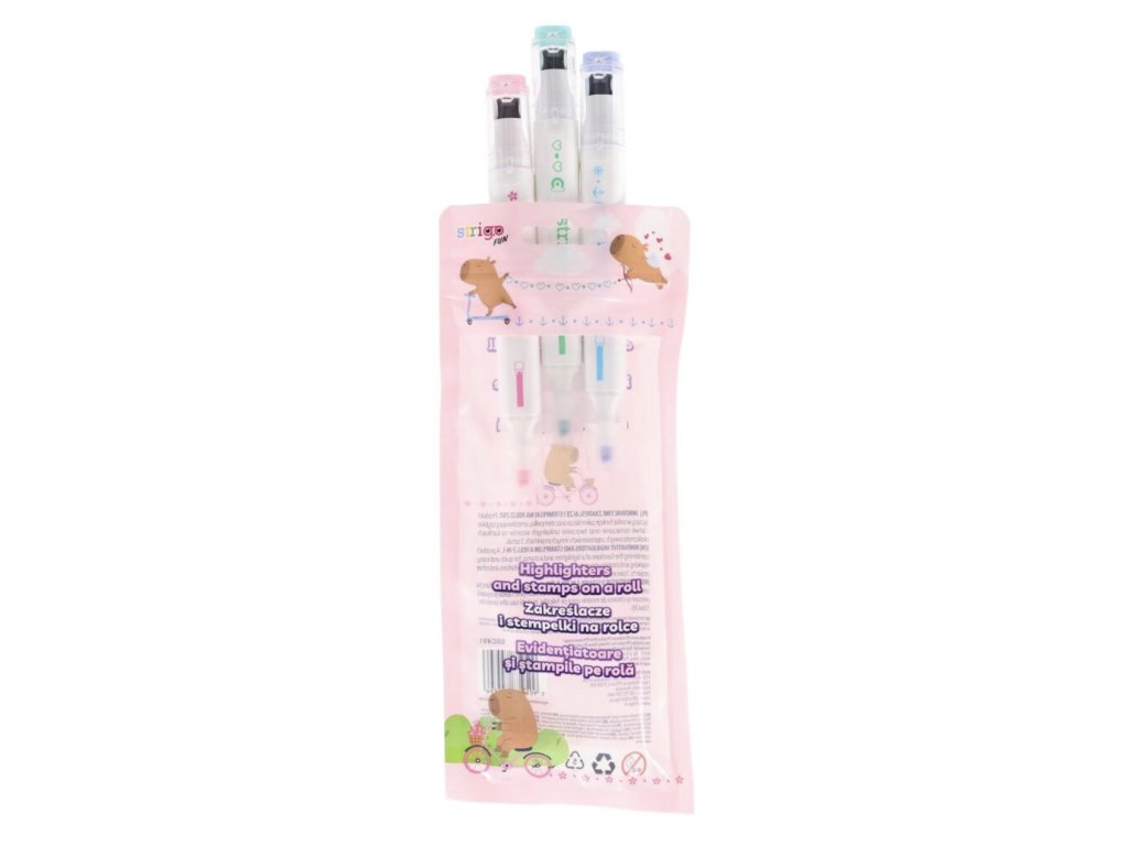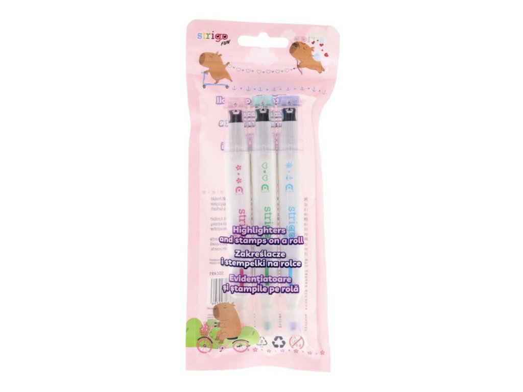 Zvýrazňovače 2 v 1 s razítkem – Kapybara (3 barvy)