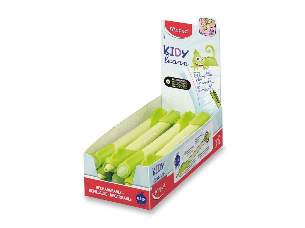 Gumovací pero Maped s originálním motivem chameleona je ideální pro malé školáky, kteří se učí psát. Díky speciálnímu inkoustu lze chyby snadno vymazat a psaní tak bude bez stresu ✏️