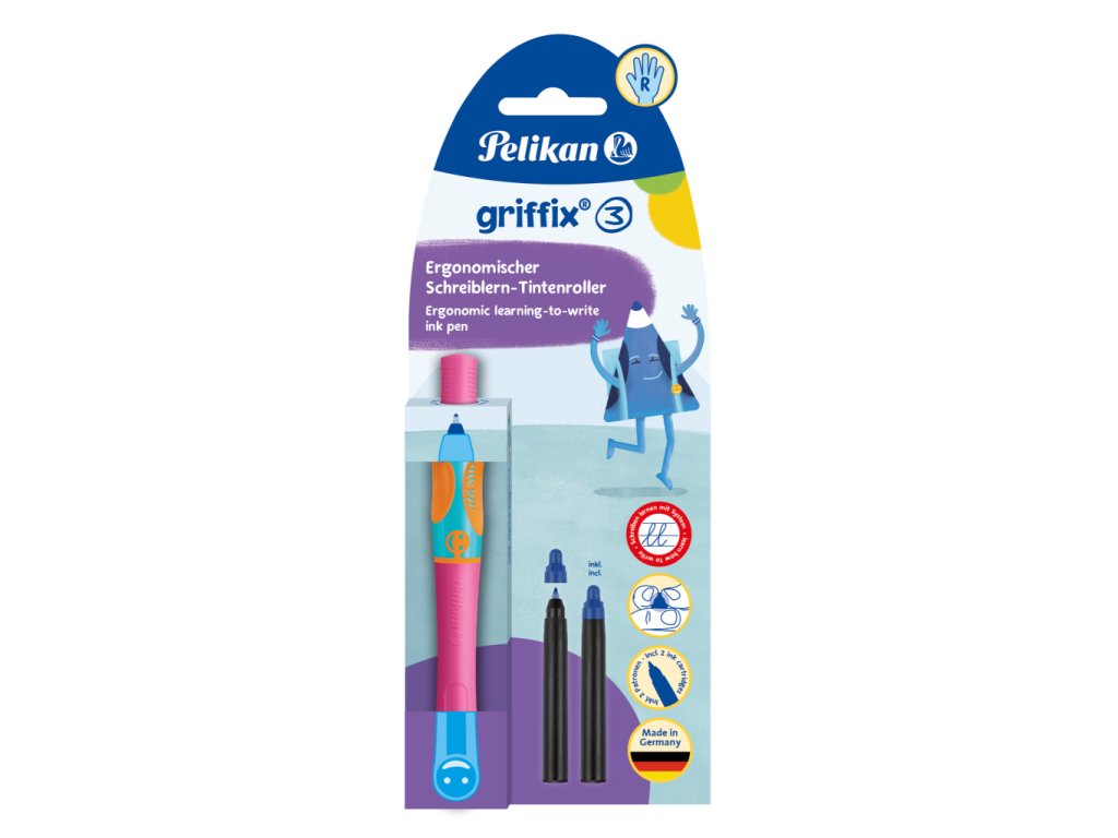Růžový roller Pelikan Griffix 3 pro praváky je ideální volbou pro školáky, kteří začínají psát – ergonomicky navržený úchop, stylový design a funkce, které pomáhají.