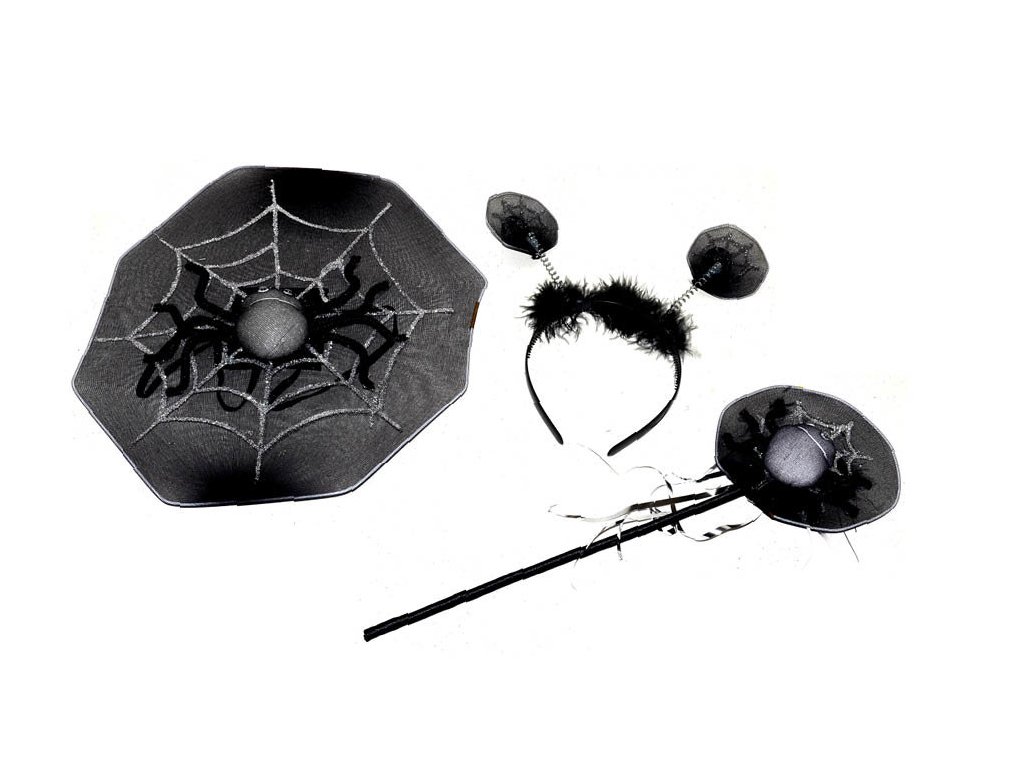 Pokud se chystáte na párty nebo halloweenskou oslavu, tak tento set nesmí chybět ve vašem šatníku. Bleskurychle s ním vyčarujete z každé princezny čarodějku. Dobrou nebo zlou? Set obsahuje: hůlku čelenku s pavučinkami hrb s hodným pavoučkem na zád