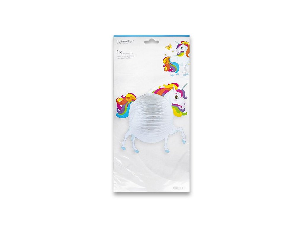 Papírový lampion s motivem a tvarem jednorožce. Ø 25 cm.
