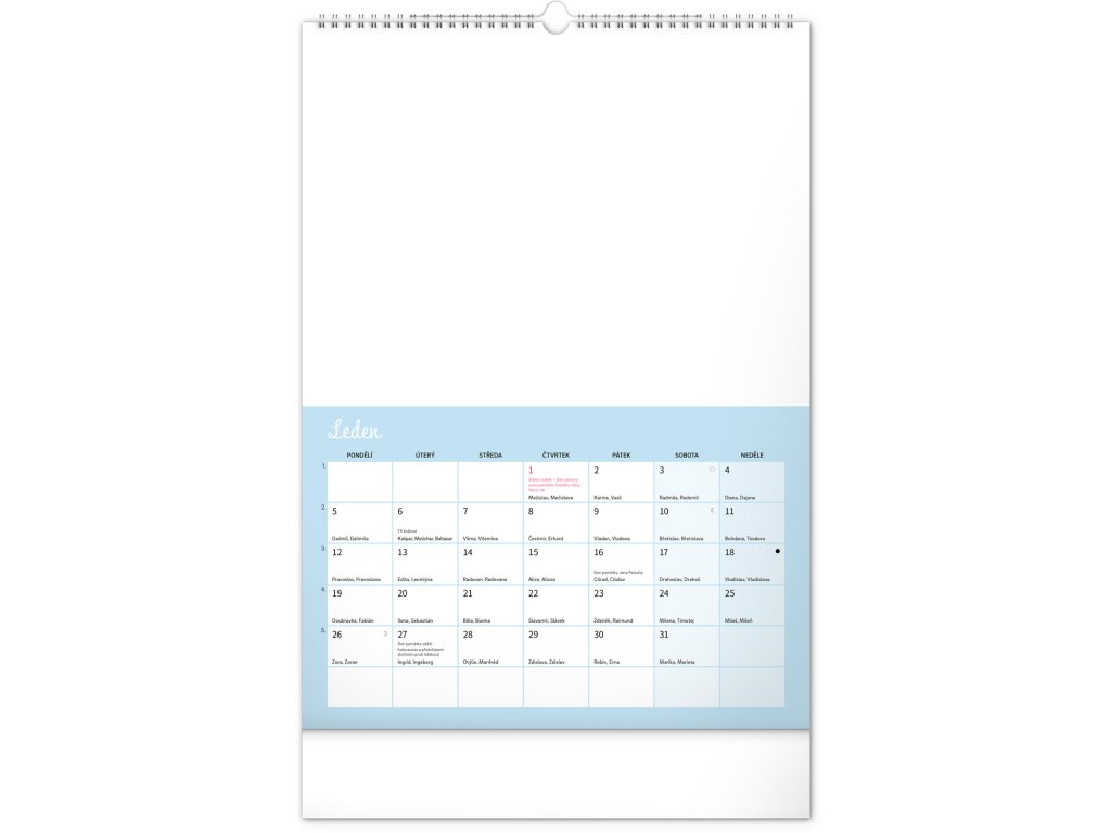 📅 Praktická vazba – dvojitá spirála s háčkem pro snadné zavěšení na zeď.