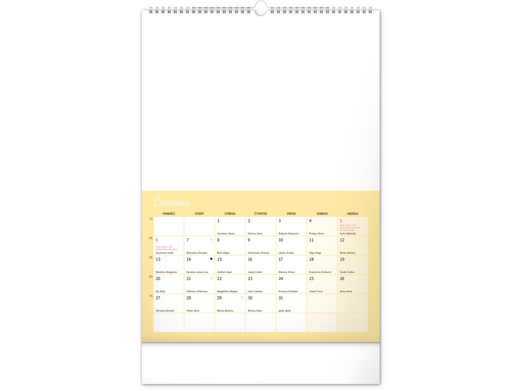 👨👩👧👦 Rodinné plánování – české kalendárium se svátky, jmeninami a místem pro poznámky.