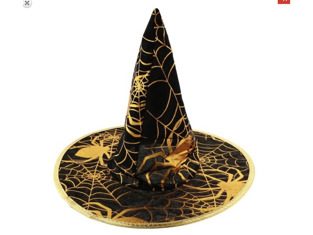 Párty čarodějnický klobouk se zlatou pavučinou (58 cm)