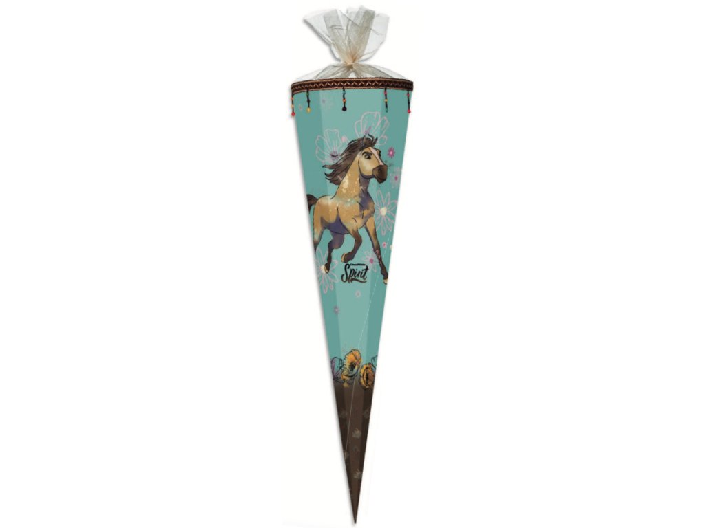 Připravte své dítě na první školní den s tímto školním kornoutem o výšce 85 cm s motivem Spirit Riding Free 2. Kornout je vyroben z kvalitního tvrdého kartonu a má kulatý tvar, který zajišťuje stabilitu při postavení. Horní část je zakončena tylovým uzávěrem, který dodává kornoutu elegantní vzhled a umožňuje snadné uzavření.