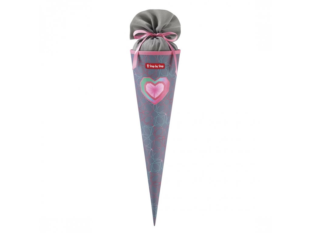 Připravte své dítě na první školní den s tímto ekologickým školním kornoutem o výšce 70 cm s motivem Třpytivého srdce od značky Step by Step. Kornout je vyroben ze 100% recyklovaných PET lahví, což z něj činí šetrnou volbu k životnímu prostředí. Má kulatý tvar a je zakončen tylovým uzávěrem, který dodává kornoutu elegantní vzhled a umožňuje snadné uzavření.