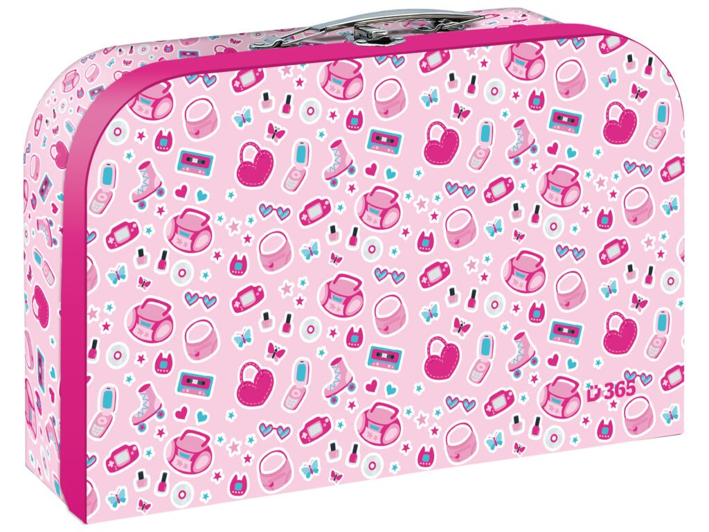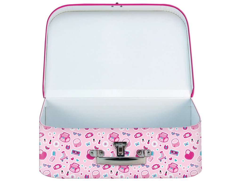 🖼️ Vnější strana kufříku je pokryta potištěným papírem s růžovým motivem, který je sladěný s dalšími produkty z kolekce STIL Pinky, jako jsou aktovky, penály či desky na sešity.