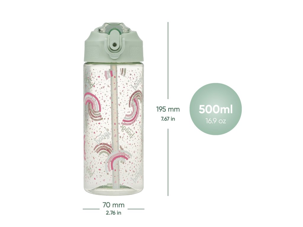 Láhev na pití s brčkem 500 ml Baagl – Duha