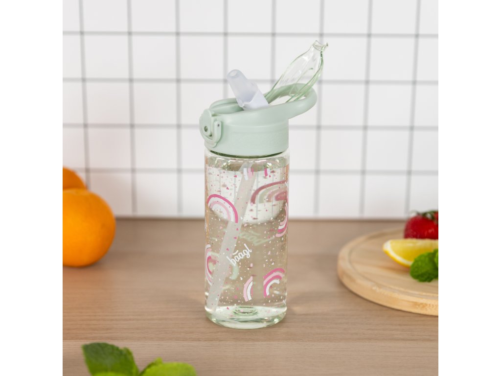 🌈 Barevná jako duha, lehká jako pírko! Tritanová láhev na pití s brčkem Baagl Duha je ideální pro holčičky do školky i školy.