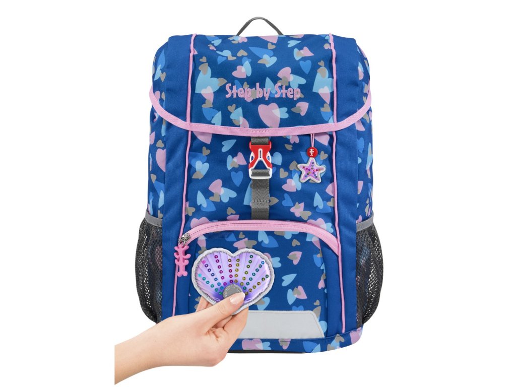Dětský batoh Step by Step KID Reflect Seashell Pearl přichází s krásným perleťovým motivem mušle a reflexním potiskem, který zajišťuje, že je dítě lépe vidět venku, za šera i při pohybu v dopravě.