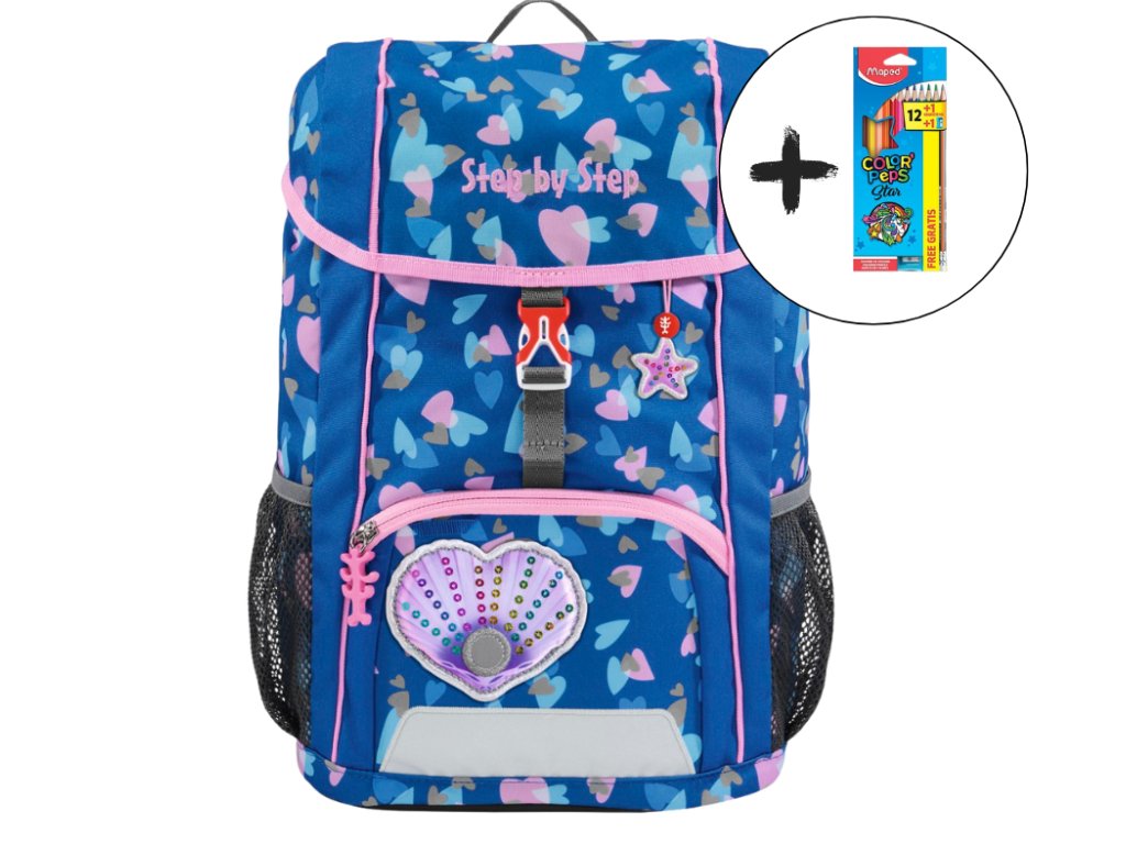 Dětský batoh Step by Step KID Reflect Seashell Pearl – 3dílný set + Trojhranné pastelky 12 barev - ZDARMA