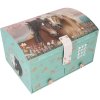Dětská šperkovnice Miss Melody Wild & Free s motivem dvou koníků na louce. Elektronický kódový zámek, zvukový efekt, přihrádky na šperky, velké zrcátko a dvě zásuvky.