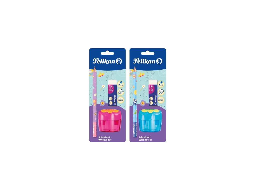 Pelikan sada – tužka B + ořezávátko + guma (modrá nebo růžová)
