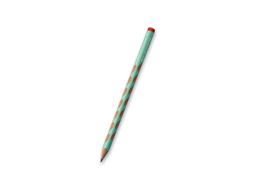 Ergonomická tužka Stabilo EASYgraph HB pro praváky s protiskluzovými ploškami a trojhranným tvarem. Vhodná pro děti, které se učí psát.