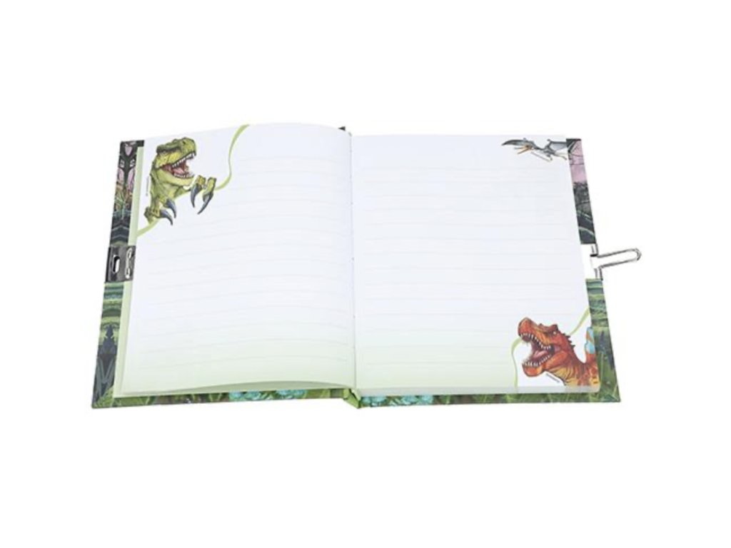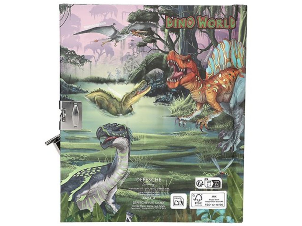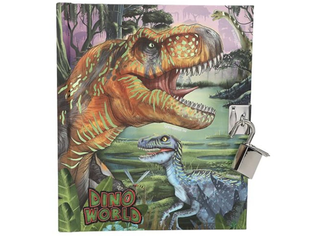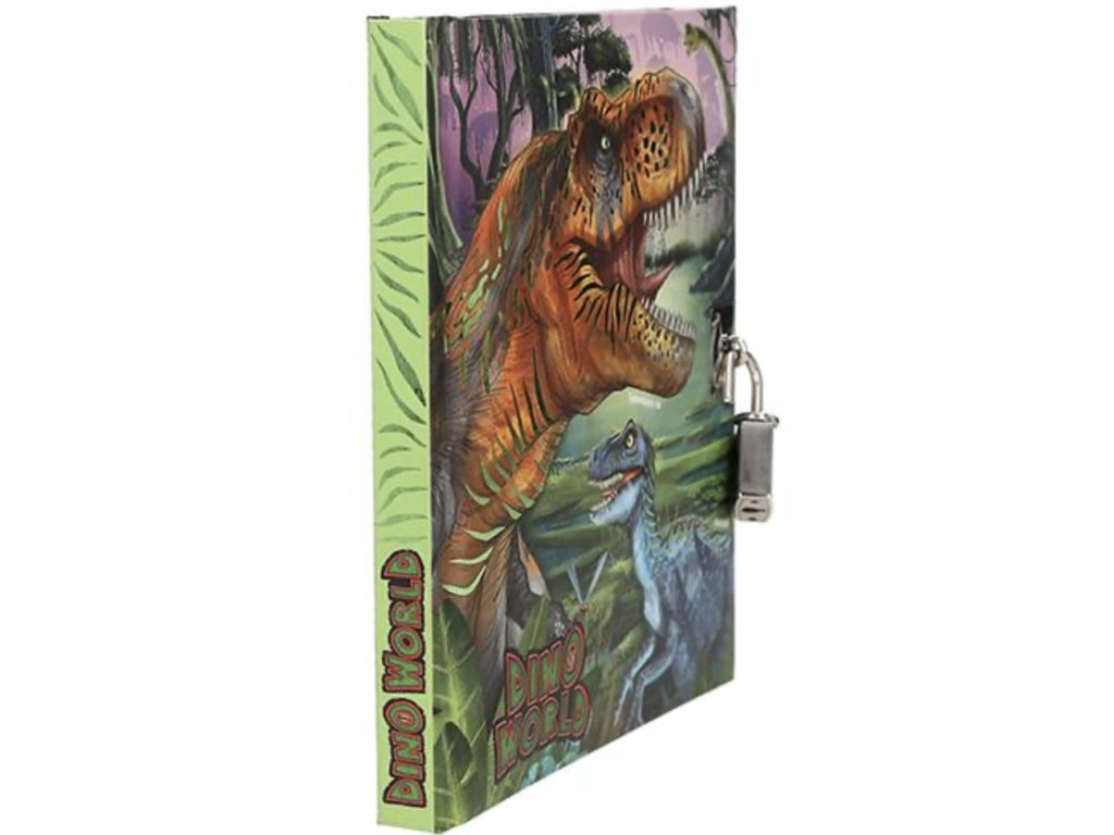Tajný deník Dino World s nastavitelným kódem a zvukem. Obsahuje 80 linkovaných, barevně ilustrovaných stránek.