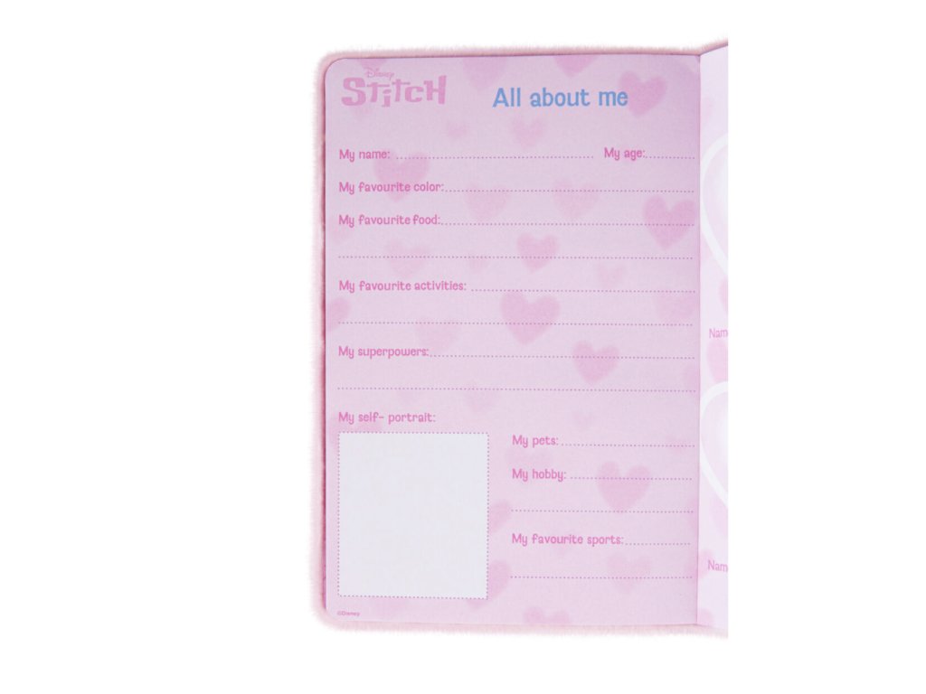 💖 Deníček / diář STITCH Fluffy Pink A5 – oblíbený motiv Stitch v růžovém provedení, ideální pro děti s vkusem pro barvy.