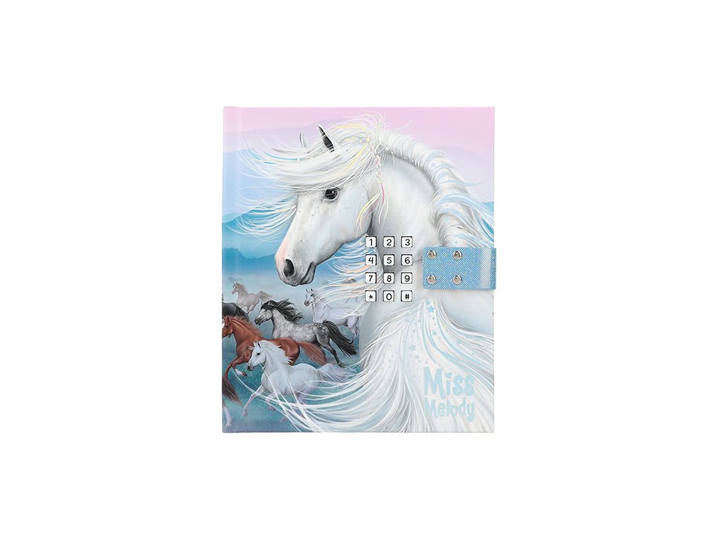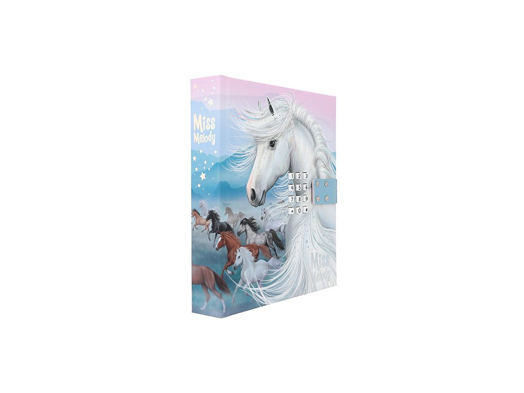 To, co si musíte určitě zapsat, zůstává dokonale ukryto v tomto nádherném uzamykatelném diáři značky Miss Melody. Zlatým hřebem je zvuk písně, který bude z diáře znít vždy při jeho otevření, pro které musíte znát ten správný číselný kód. Diář je jemně linkovaný a obsahuje 80 stránek.