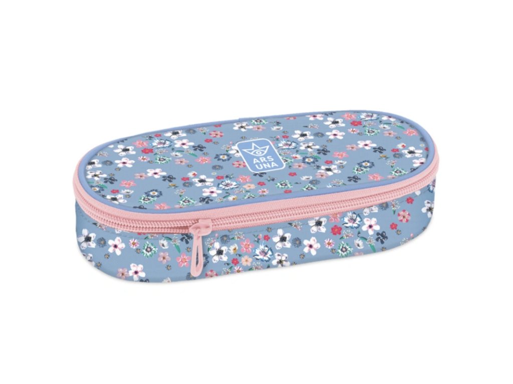 Jednoduchý školní penál oválného typu z kolekce Pearl Blossom Blue.