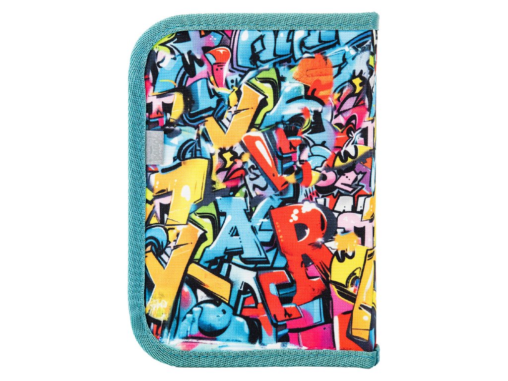 Školní set zahrnující aktovku Zippy s motivem skateparku, klasický dvouchlopňový penál a sáček na obuv je ideální pro děti nadšené pro street-art.