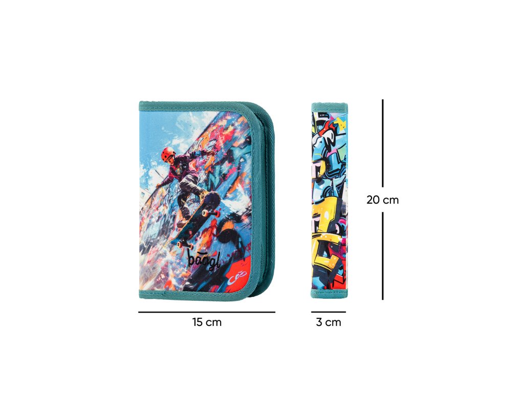 Představujeme Baagl Skatepark – jednopatrový školní penál, který snadno rozbalíš a přehledně uspořádáš: