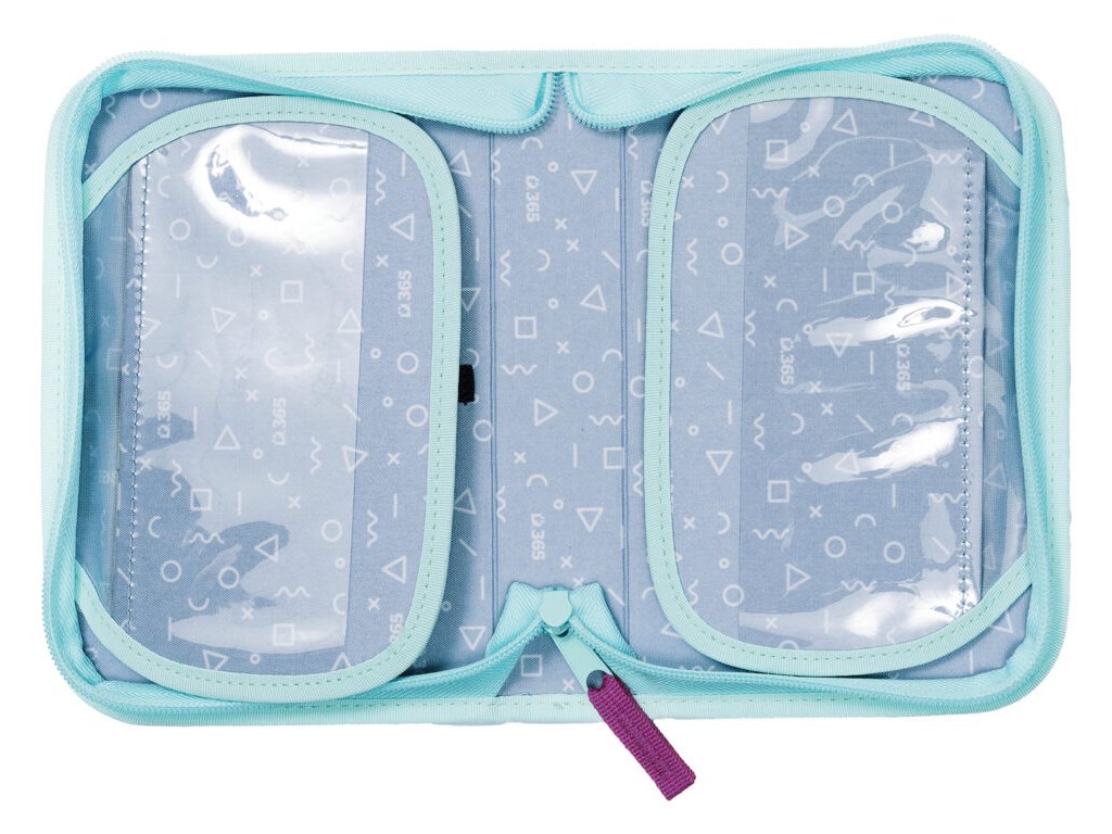 📎 Chlopně penálu mají na vnější straně průhlednou kapsičku na rozvrh hodin nebo jiné malé dokumenty, a na vnitřní straně je praktická síťovaná kapsička pro drobné věci, které se tak neztratí.