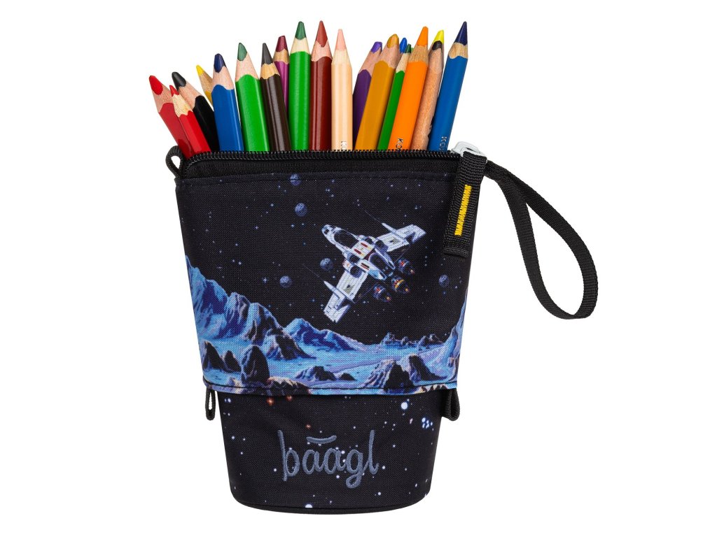 Pastelkovník Baagl Pixel Space – pouzdro na pastelky se stojánkem