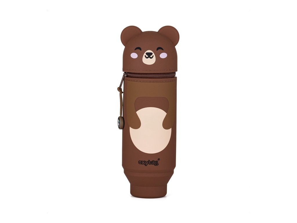 Silikonová etue Oxybag Medvěd si získá každého školáka na první pohled 🧸🤎 Díky plastickým 3D ouškům působí jako roztomilý kamarád do lavice i na domácí úkoly.