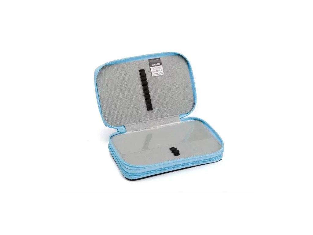 Dvoupatrové penály obsahují v prvním patře 8 gumiček na pastelky, 2 gumičky na tužky a jednu větší na pero, dále gumičky na ořezávátko a gumu a kapsičku na drobnosti, uzavíratelnou na patent. Ve druhém patře penálu je umístěna průhledná kapsička na rozvrh a tajné dokumenty a 9 pevných gumiček na psací potřeby různých velikostí. Dokonale barevně sladěný design s aktovkou či batohem je samozřejmostí.