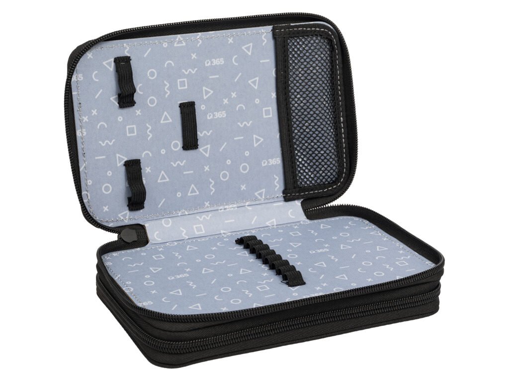 Ve druhém patře penálu je umístěna průhledná kapsička na rozvrh a tajné dokumenty a 9 pevných gumiček na psací potřeby.