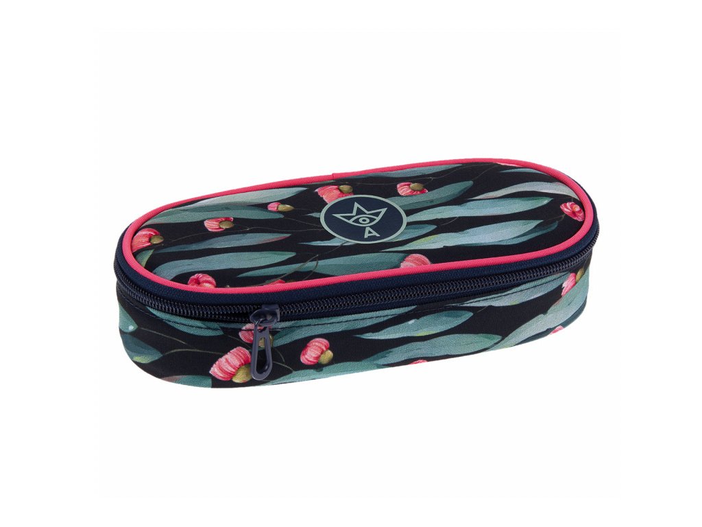 Jednoduchý školní penál válcovitého typu z květinové kolekce Eucalyptus od výrobce Ars Una s jednou komorou a malou kapsou na zip uvnitř, bez výbavy.