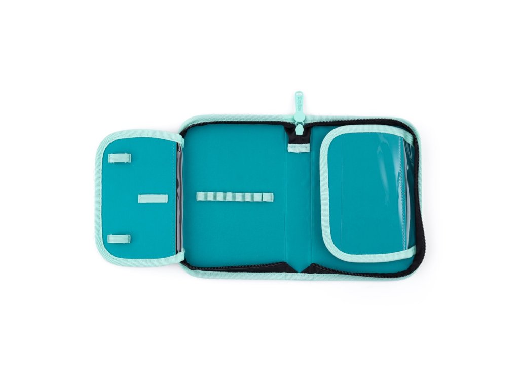 🎒 Školní penál OXY BAG Dots nabízí jedno patro se dvěma chlopněmi, které usnadňují organizaci školních pomůcek. Uvnitř najdete 25 elastických gumových pout, která udrží tužky, fixa, pastelky i pera pevně na místě a vždy přehledně