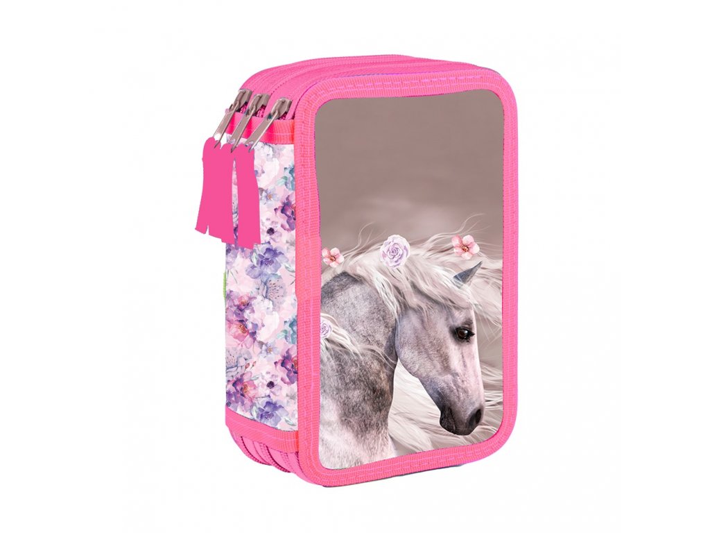 Školní penál Oxybag Kůň Romantic 2024 – 3patrový, prázdný