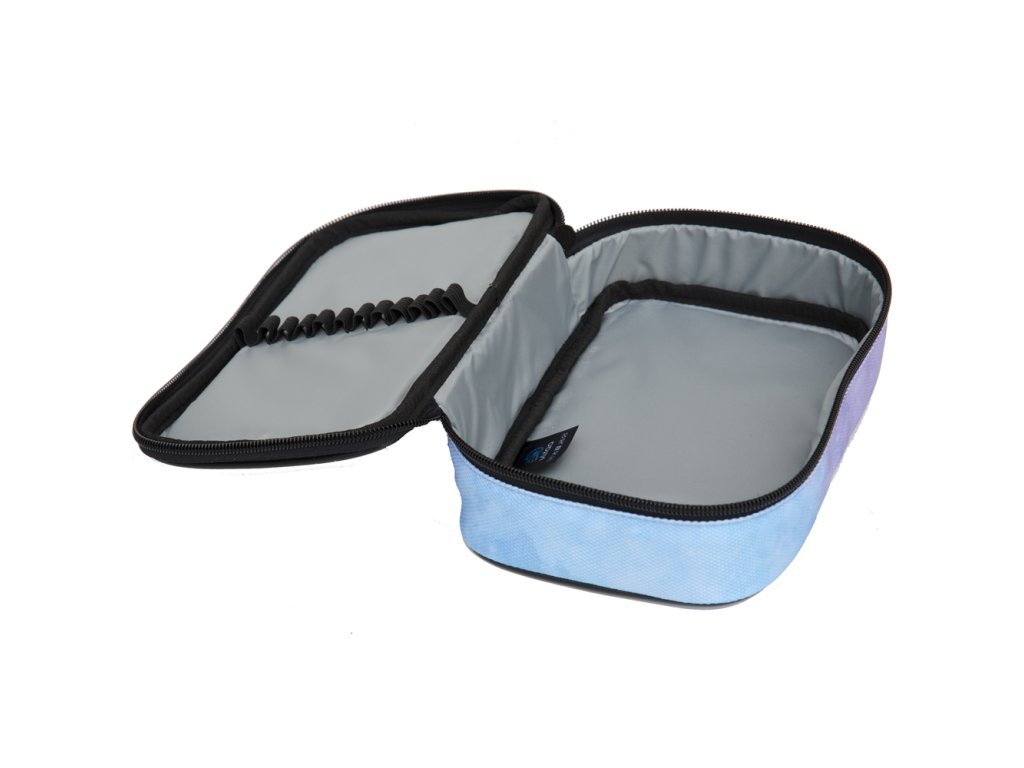 Penál má jednu zipovou kapsu a velký úložný prostor uvnitř. Na vnitřní straně víka pouzdra se nachází 12 gumiček na tužky, pera a pastelky. Do zbylého prostoru se vejdou všechny ostatní školní pomůcky - ořezávátko, nůžky, guma, pravítko nebo malá školní kalkulačka.