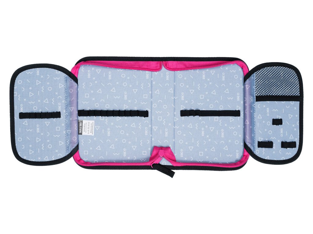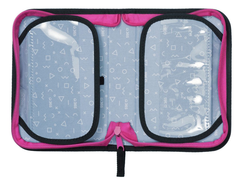 Penál nerozbaluj v pračce! Obsahuje papírovou výztuhu, která by se při praní poškodila. K čištění stačí vlhký hadřík.