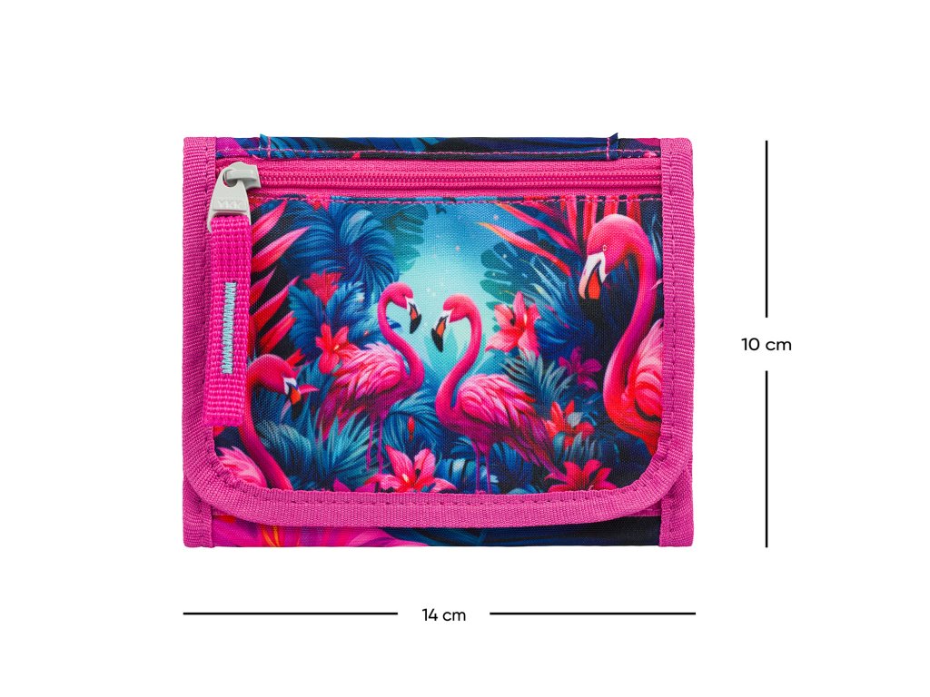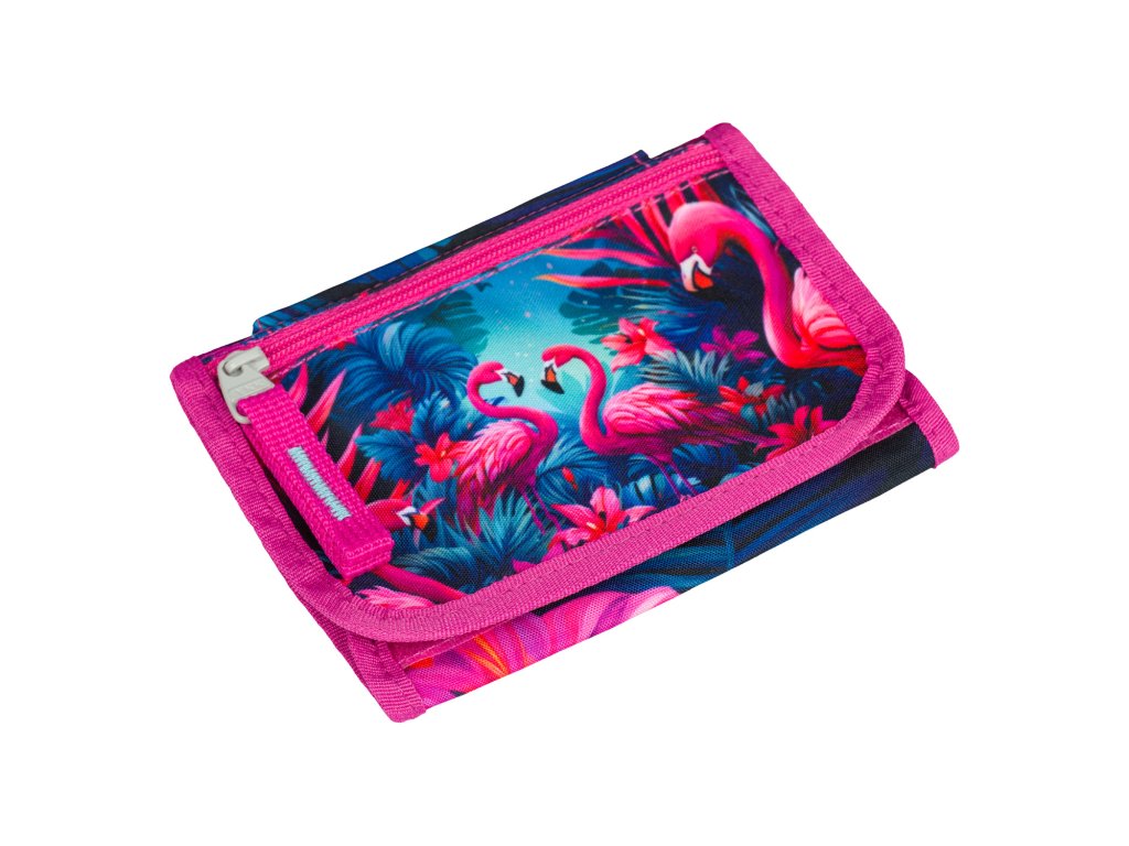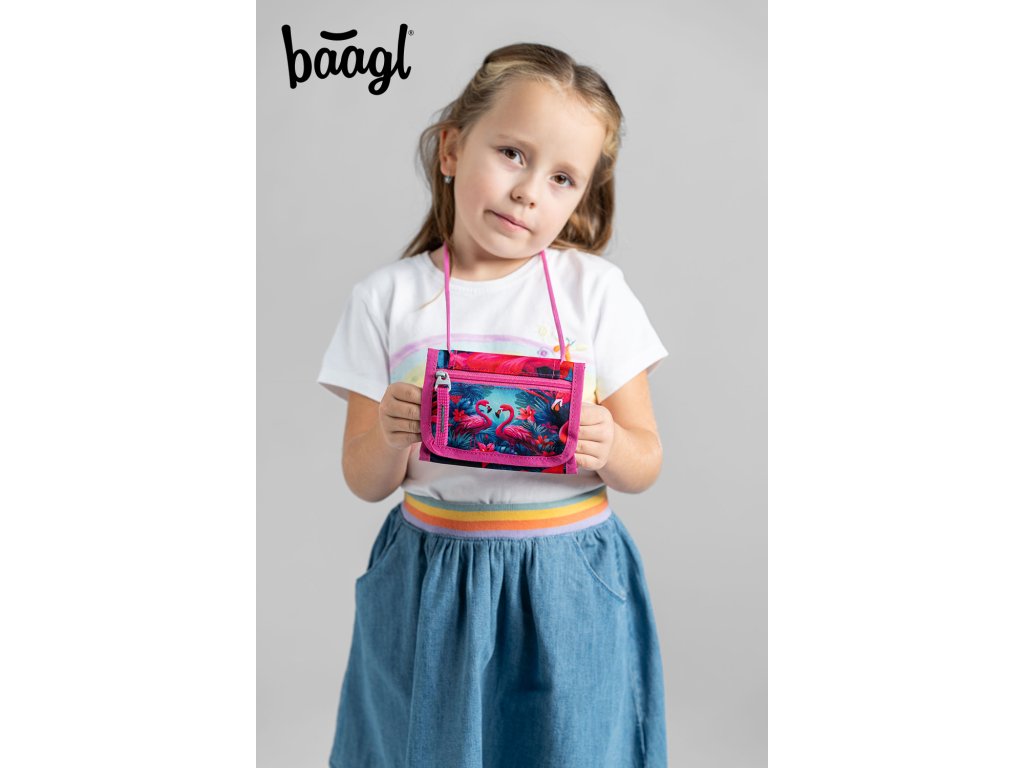 Jednopatrový školní penál Baagl s motivem plameňáků. Dvě chlopně, bez náplně, uzavíratelný na kvalitní zip. Lehký a přehledný.