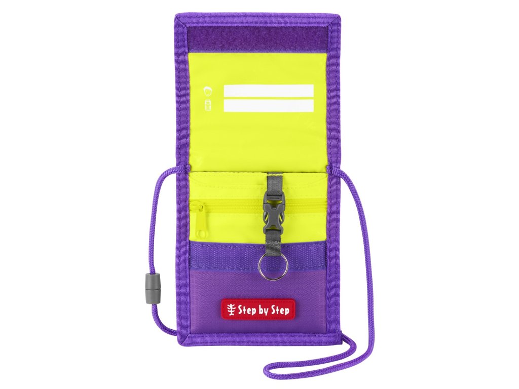 Šňůrka je vybavena bezpečnostním uzávěrem, který se otevře při zachycení. Děti mohou kapsičku nosit na krku bez obav během výuky i venkovních aktivit.