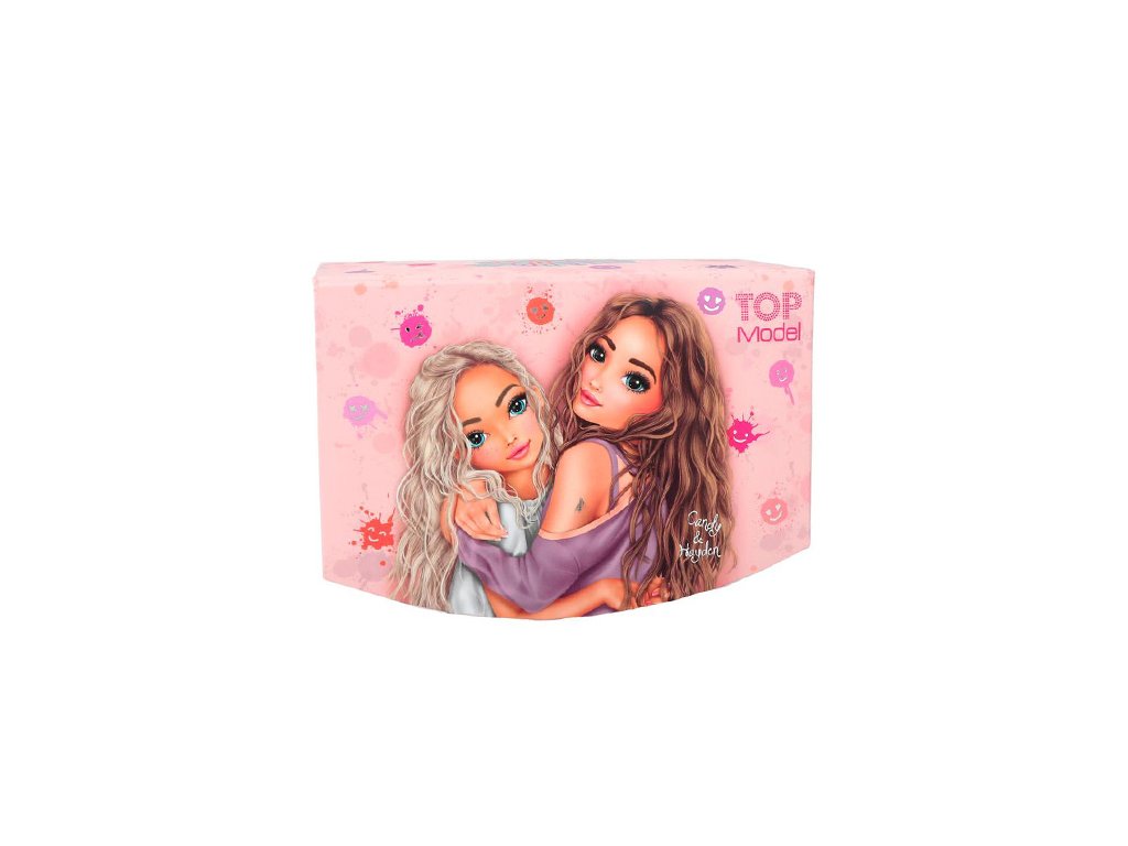 Tato světle růžová šperkovnice značky Top Model je jako stvořená pro všechny malé milovnice módy 👑. Nese motiv oblíbených postaviček Candy a Hayden a nabízí dokonalé místo pro všechny prstýnky, náušnice a další poklady 💖.