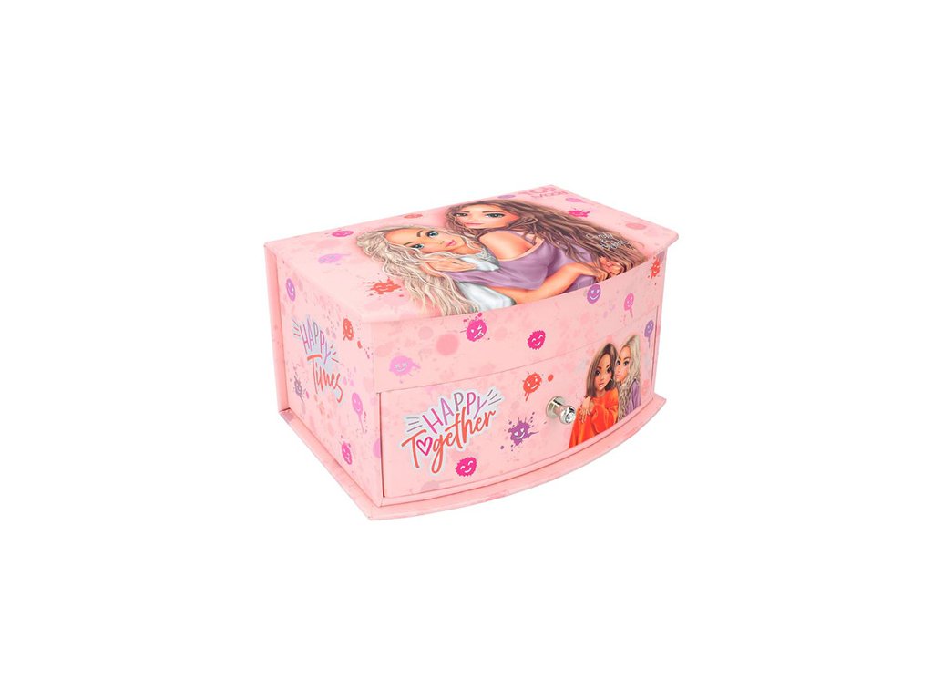 Růžová šperkovnice Top Model MY BFF s kódovým zámkem a melodií BEST FRIENDS. Praktické přihrádky, dva šuplíčky a prostor na šperky i tajemství. Motiv modelek Candy & Nyela.