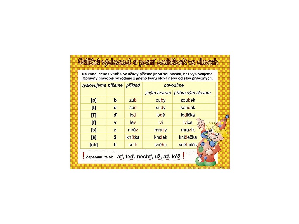 formát A4,nápověda slovní druhy+souhlásky