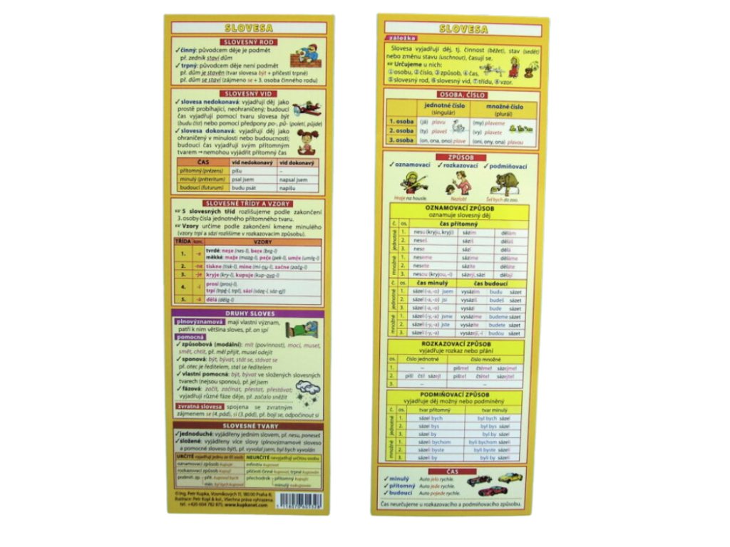 Záložka SLOVESA – přehled sloves a jejich tvarů (učební pomůcka)